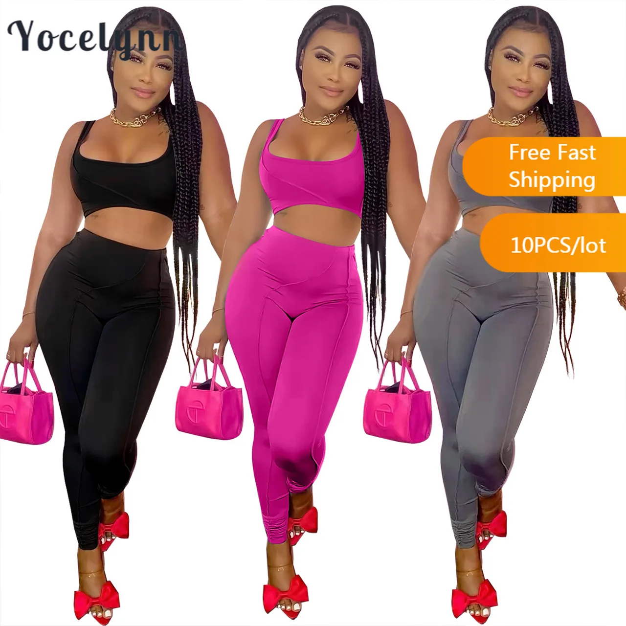 Bulk Items Wholesale Lots Summer Black 2 Piece Sets Womens Outfits Crop Tank Tops And Skinny Pants Set Workout Jogger Suit 2022 Aliexpress